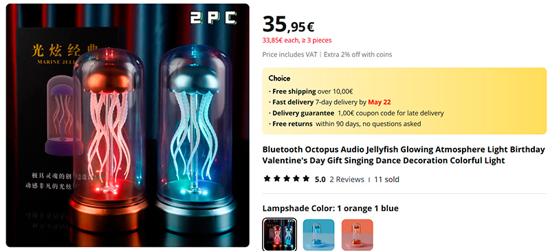 Bluetooth-колонка с медузой, которая движется и переливается в такт музыке. Медитативно-завораживающе.
