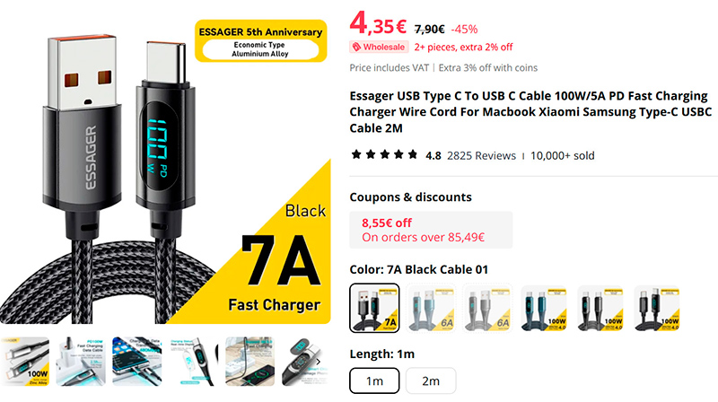 Нравится мне этот производитель, я использую их кабель с дисплеем, показывающим мощность заряда (а это самое главное), для быстрой зарядки. Поддерживают зарядку до 100 Вт, есть Type-C - Type-C и Type-C - USB-A. На 1 и 2 метра.
