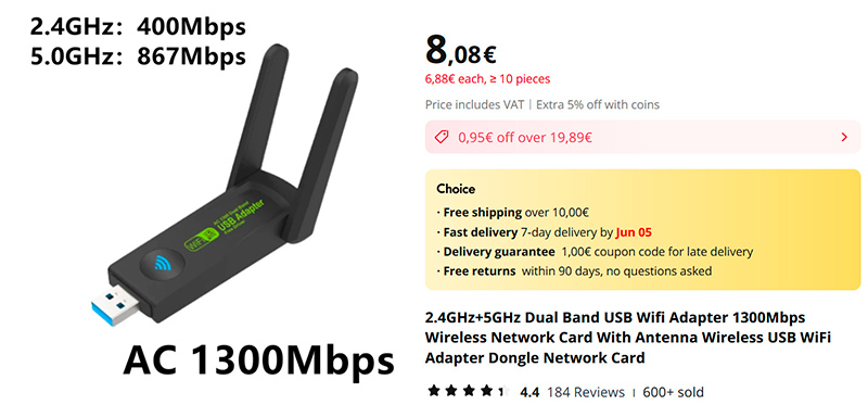 Понадобилось беспроводное подключение для ПК, а там нет встроенного WiFi? Ну, уж если и покупать адаптер с WiFi, то современный - быстрый и двухдиапазонный. Например, вот такой. Хорошие скорости, две антенны.