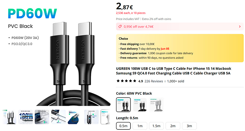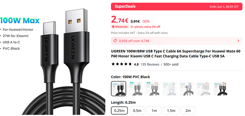 Ну и решил взять пару подходящих кабелей про запас. А так как по адаптерам и кабелям у меня основной производитель - Ugreen, то у них и пошел искать.