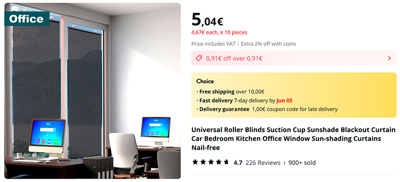Рулонные шторы: цена - 4,5 евро, доставка - 50 евро. Китайцы, они такие китайцы... 😄