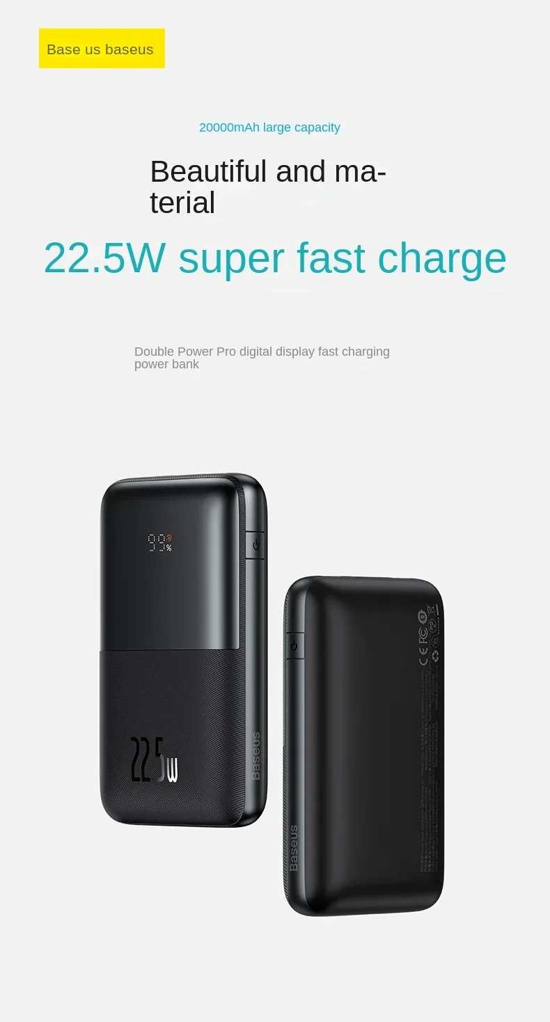Отличный рowerbank от проверенного производителя. Поддерживает быструю зарядку до 20w. Есть 2 usb выхода и Туре-С вход/выход. Экран с индикацией оставшегося заряда и кнопка для включения индикации как всегда у Baseus, в наличии. Защита от перегрева, перезарядки, перенапряжения, перегрева и т.д. При емкости в 20к подходит под международные стандарты перевозки. Есть 4 цвета на выбор.