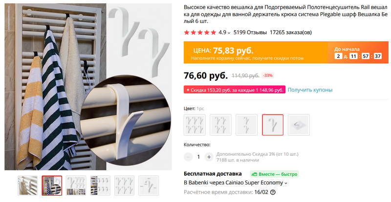 Это я себе искал - вешалки для полотенцесушителя. Нередко бывает нужно повесить высушиться кроме большого полотенца, еще пару полотенец поменьше, и тут без таких вешалок не обойтись. Штука копеечная, но полезная, я себе взял пять.