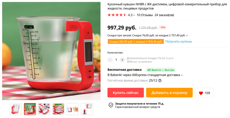 Люблю такие комбинированные устройства - мерный стакан и одновременно весы с дисплеем. Устройство компактное, меряет до 600 мл.
