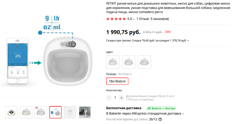 Умная миска для домашних животных, умеющая взвешивать количество корма (это особенно актуально для сухого корма).