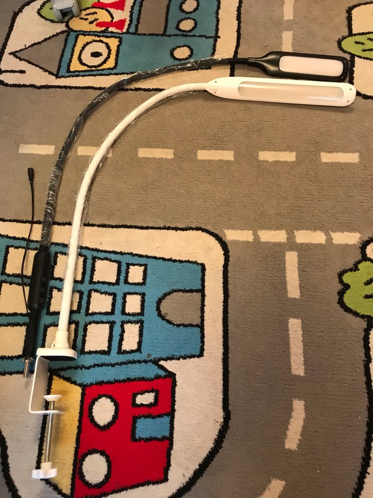 Говорит, что удобная штука. Особенно для ведения дистанционного обучения. Шея и руки меньше устают при работе.