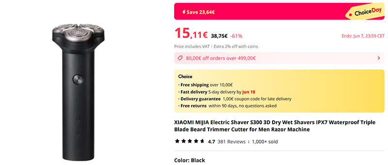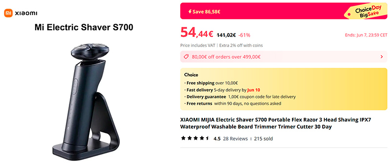 На новую модель электробритвы для сухого и влажного бритья Xiaomi Mijia Shaver S700 заметно понизилась цена: теперь ее можно купить за €54, а я ее в ноябре прошлого года покупал почти за €80. Надо сказать, что эта модель сильно удачнее предыдущей, у которой с зарядкой были проблемы, и она могла быстро выйти из строя. Здесь с зарядкой все хорошо, и я бритвой очень доволен, только ее и использую, так что спокойно могу рекомендовать.