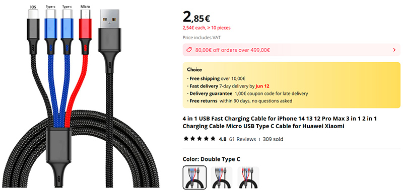 Из зарядных кабелей "3 в 1" я сам использую вот такой вариант "4 в 1": там три варианта - Lightning, Type-C и microUSB, причем какой-то из наиболее важных кабелей можно продублировать, - и, что важно, каждый вариант имеет свой цвет, так что не промахнетесь. Я себе взял вариант с парой Type-C - очень удобно.