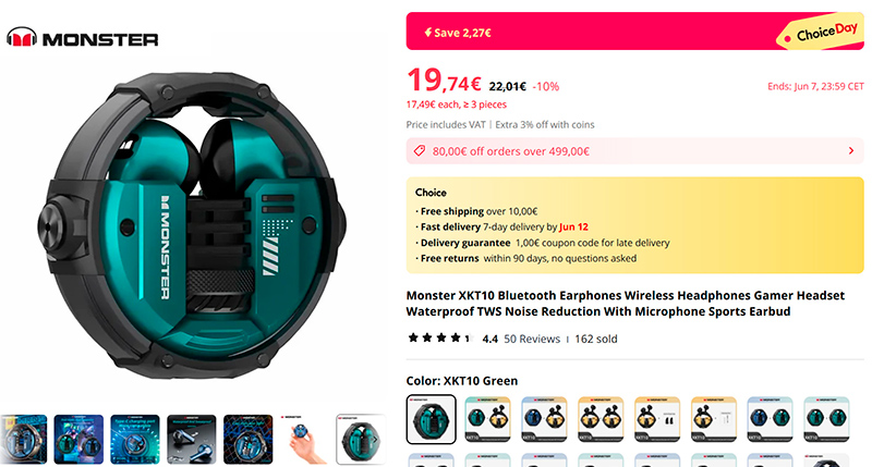 Очень нестандартно и интересно выглядящие TWS-наушники-вкладыши Monster XKT10. Поддерживают кодек AAC, 4 часа работы от одного заряда, влагозащищенные, Bluetooth 5.2, есть специальный игровой режим.