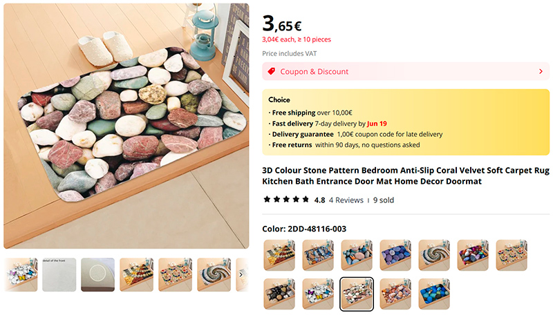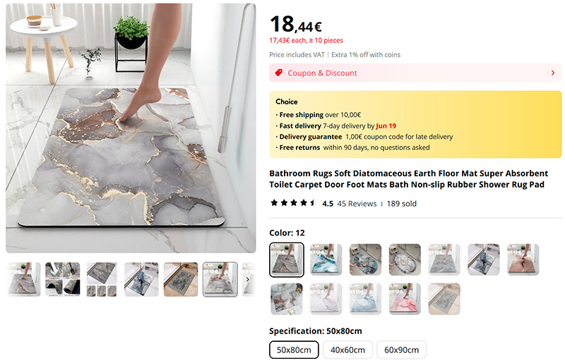 Искал себе прикольные прорезиненные коврики для ванной - имеющиеся уже надоели, хотел поменять. Мне хотелось что-нибудь морское, пляжное - с камешками какими-нибудь. Нашел вот такое с морской галькой. Там размер только 40х60 см, но мне как раз такой и подходит. 12 вариантов расцветок.