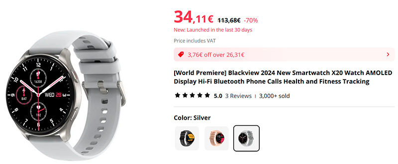 Компания Blackview выпустила новую модель их умных часов (они умные часы уже выпускали раньше, но я их не тестировал) - Blackview Smartwatch X20. На старте продаж цена очень низкая, но у них, впрочем, все умные часы - достаточно дешевые. Три варианта цветов. Дисплей AMOLED 466x466, поддерживаются разные языки, есть динамик и микрофон, влагозащита - а закажу-ка я их потестировать, интересно.