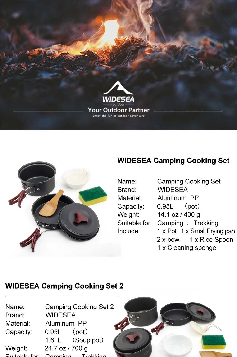 Легкая алюминиевая посуда для походов от проверенного производителя Widesea сейчвс со скидками. Идеально подойдет для использования в походах, так как разработан специально для этого. И даже разные наборы будут идеально подходить друг другу и складываться матрешкой, занимая минимальное место. При этом кухонные принадлежности имеют специальное покрытие, не позволяющее еде пригорать. Наполнение набора можно выбрать, в данном случае, из 4 вариантов. Сам производитель проверенный и специализируется на оборудовании для походов - от палаток до кухонной утвари.