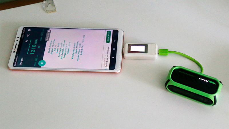 Реальную емкость можно было измерить приборчиком, но мне интереснее было провести натурные испытания, для чего я почти полностью разрядил Xiaomi Mi Max 3, у которого аккумулятор емкостью 5500 мАч, и поставил его заряжаться от этой батареи.