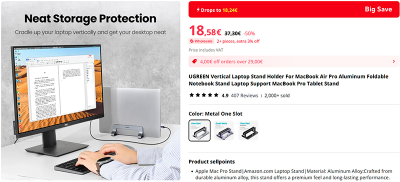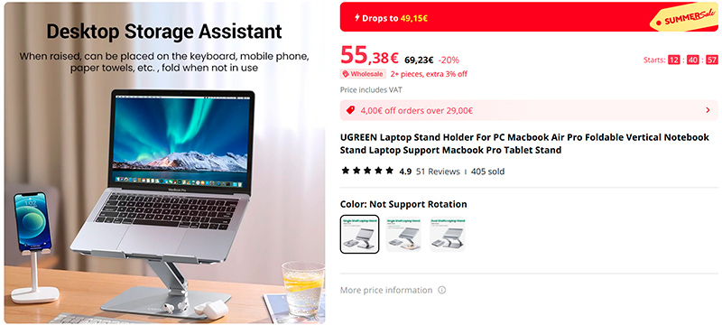 А если нужна подставка, чтобы работать на ноутбуке - у Ugreen же есть вот такая удобная модель