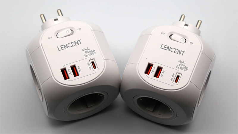Приехали также вот эти продвинутые тройники Lencent, уже проверены в работе. И это лучшие тройники из всего, что у меня было! Четыре европейских розетки, два порта USB-A, с поддержкой QC 3.0, Type-C с поддержкой PD20 Вт, еще и с выключателем. Отличная штука!
