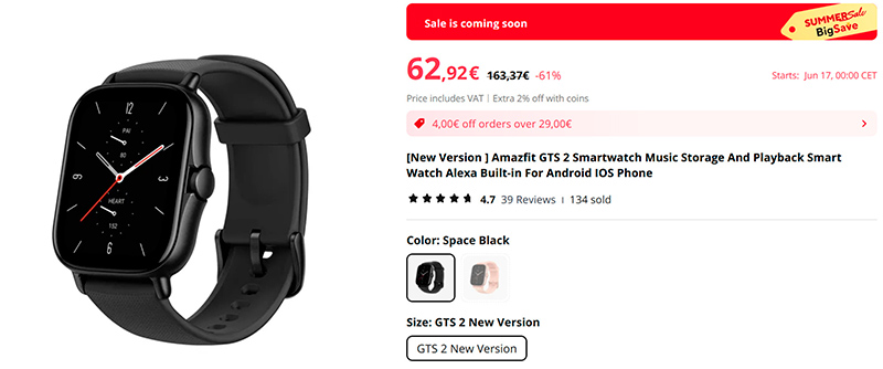 Появилась новая версия умных часов Amazfit GTS 2 (я писал обзор версии GTS 2e, которая отличается только тем, что у нее нет WiFi). Качественные умные часы по цене немного дороже фитнес-браслета. В Испании продаются за €102, здесь почти в два раза дешевле.
