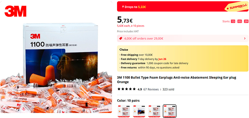 Где купить? Например, вот здесь (ссылка для РФ на 3M, но в другой комплектации): есть комплекты в 10, 20, 50 и 200 пар, причем каждая пара упакована в отдельный пакетик - удобно брать с собой в поездки, можно не покупать отдельный контейнер.