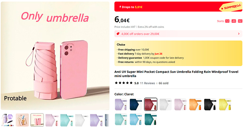 Полезная штука - сверхкомпактный зонтик, который в сложенном виде имеет высоту всего 16 см - мой смартфон выше на 5 мм. Такой не будет мешаться в сумке, и если что - защитит в случае внезапного дождя. Есть самые разные расцветки.