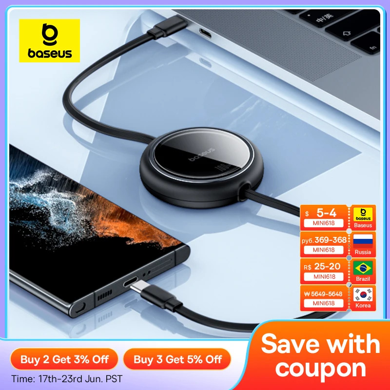 Кабели 60Вт и 100Вт от Baseus с механизмом сматывания.