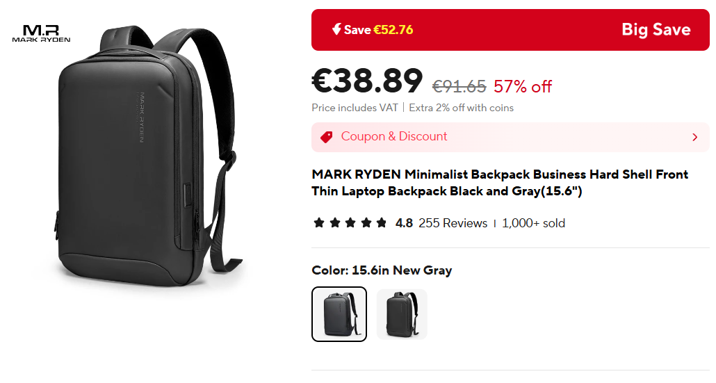 Отличный рюкзак для ноутбука и не только. Я хотел именно такой - достаточно плоский и лёгкий. Отлично держит форму, хорошо выглядит. Помещается мой 14" бук и все аксссесуары, ещё и место остаётся. Качество материалов и пошив - на высшем уровне. Не ожидал такого качества от китайцев.