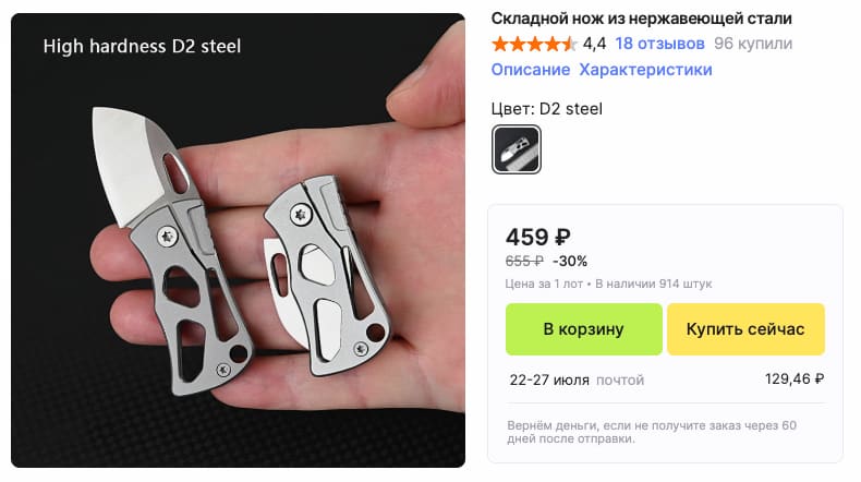 Маленький складной ножик-брелок для вскрытия посылок . Острое толстое лезвие, легкая стальная ручка с приятным покрытием. В сложенном виде 5 см, в раскрытом 8 см.