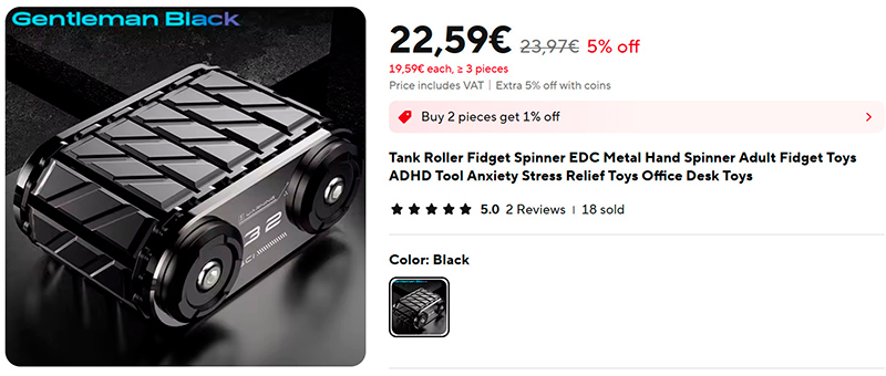 Спинер-антистресс (ссылка для РФ). Его можно в руках тилибомкать или по столу катать. Люблю такие штуки, заказал. Надоело ручку в руках крутить.