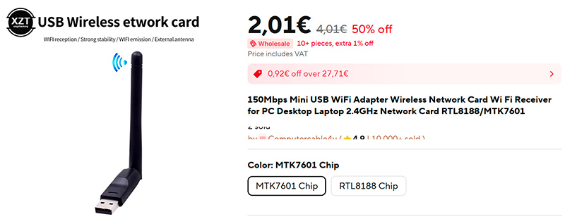 Понадобился Wi-Fi для ПК, или же у старого ноутбука стал глючить Wi-Fi: самый простой вариант этот Wi-Fi получить - вот такой адаптер с Wi-Fi под USB (ссылка для РФ). Имеет поворотную антенну для улучшения качества приема.