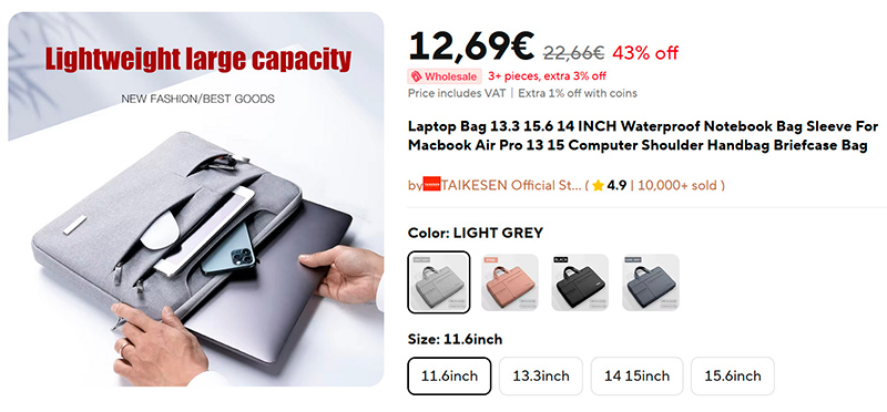 Удобные сумки для ноутбуков (ссылка для РФ) компании TAIKESEN. Четыре варианта размеров, четыре варианта цветов. Сумка снабжена специальным ремнем для крепления на ручке чемодана.