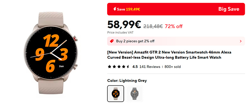 Еще больше опустилась цена на обновленную модель умных часов Amazfit GTR 2, и теперь эти часы можно купить примерно за 60 евро (6 тысяч рублей для РФ). Мне в свое время эти часы понравились, хотя и были мелкие претензии, но с того момента заметно изменилась прошивка, а цена €60 за такие часы - это прям очень хорошо. Если вам хочется купить продвинутые, хорошо выглядящие, но при этом не слишком дорогие умные часы, то это очень достойный вариант, потому что если говорить о новых моделях, то за 50-60 евро вы можете купить часы совсем другой категории, заметно более низкой.