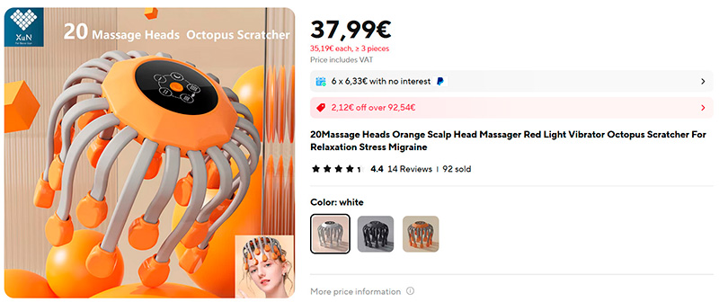 Вот эту фигню я себе сразу заказал, как увидел - массажер для головы (ссылка для РФ). Я от обычной железной массажной фигни погружаюсь в нирвану, а что будет с этой электрической - даже и представить трудно. Потом поделюсь впечатлениями.