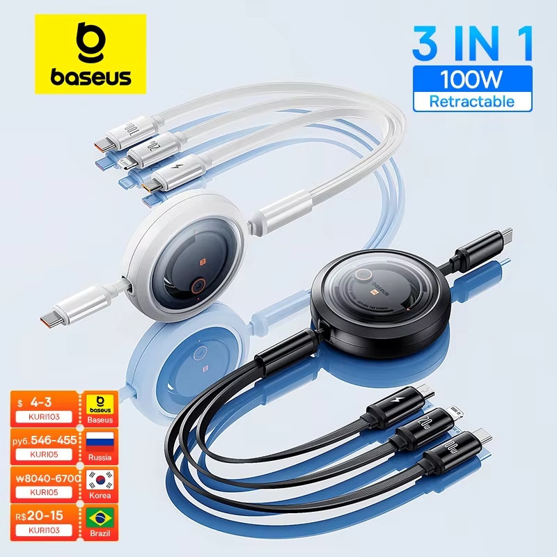 - Кабель 3-в-1: для устройств iPhone, Type-C и Micro USB.