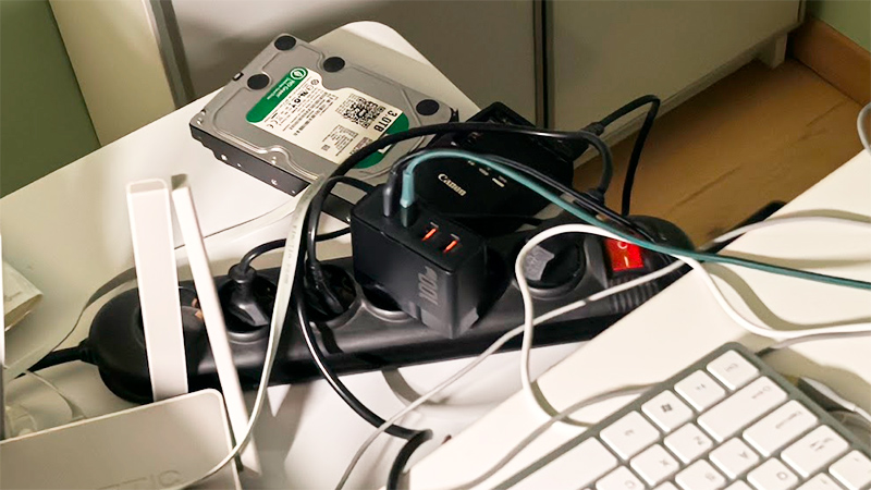В комплекте идет кабель 100 Вт. Зарядка оснащена портами 1хUSB + 2xType-C, поддерживает протоколы быстрой зарядки QC3.0 и PD3.0. Есть все необходимые защиты.