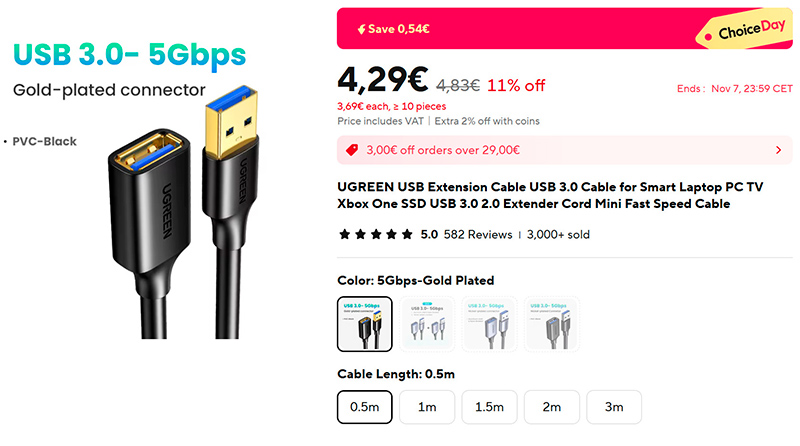 Нередко бывает так, что свободный скоростной порт USB 3.0 находится только на задней стенке корпуса ПК, стоящего на столе или на полу, а к нему нужно подключить внешний скоростной диск или скоростную флешку. В таком случае имеет смысл использовать удлинитель USB, причем удлинитель скоростной, поддерживающий максимально возможную скорость. У Ugreen есть удлинители такого рода (ссылка для РФ), причем там еще можно выбрать желаемую длину: от полуметра до трех метров.