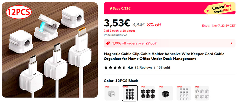 Но тут возникает вопрос, как закрепить этот удлинитель на столе, чтобы он не загромождал пространство? Ну так воспользоваться соответствующим органайзером для кабелей. Мне из этой серии больше всего нравятся вот такие органайзеры на магнитах (ссылка для РФ), которые можно закреплять как на поверхности стола, так и с торца стола, чтобы уж совсем никакого места не занимать. И по этой ссылке эти держатели есть в вариантах 1, 3 или 12 штук белые или черные.