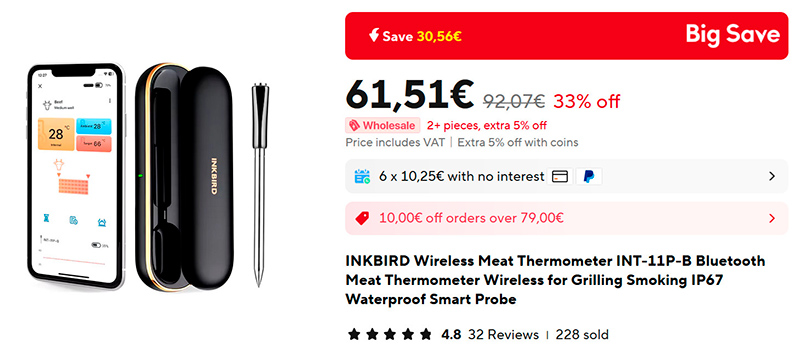 Он выглядит довольно похоже на INKBIRD. Я к тому, что локальный вариант (на вашем местном маркетплейсе) может быть быстрее и дешевле, к тому же с местной гарантией, что гораздо удобнее, чем отправлять его обратно продавцу на AliExpress, если что-то пойдет не так.