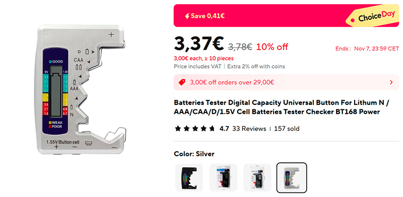 Тестер емкости батареек/аккумуляторов - совершенно необходимая штука в хозяйстве. Вот несколько видов таких тестеров (ссылка для РФ), я использую тот, который на картинке, он очень удобный.