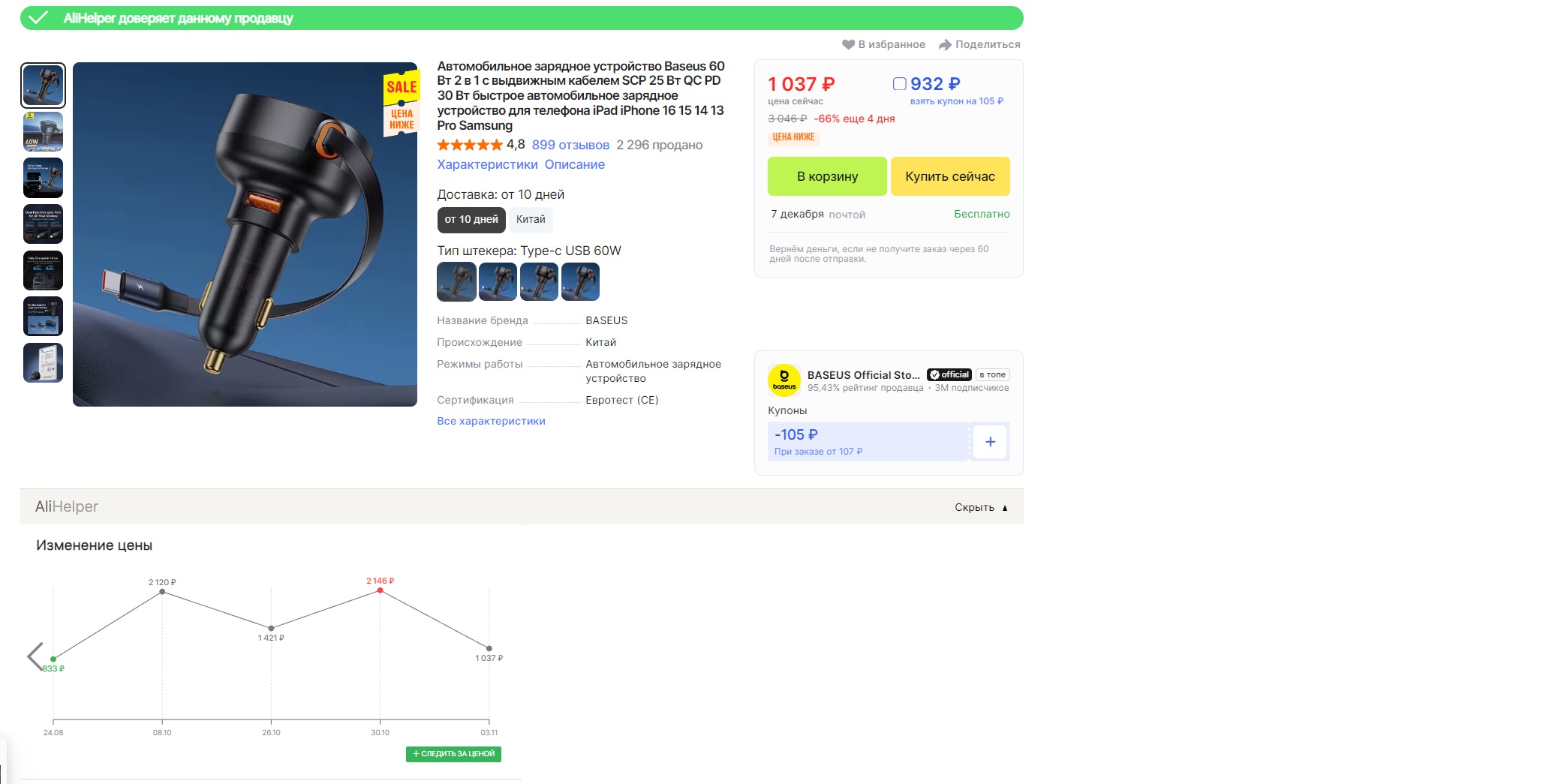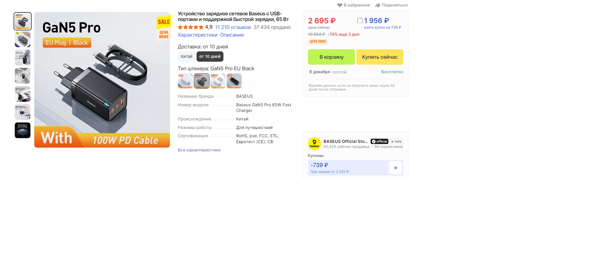 Рейтинг 4.9; свыше 11к отзывов; 37,5к продано.