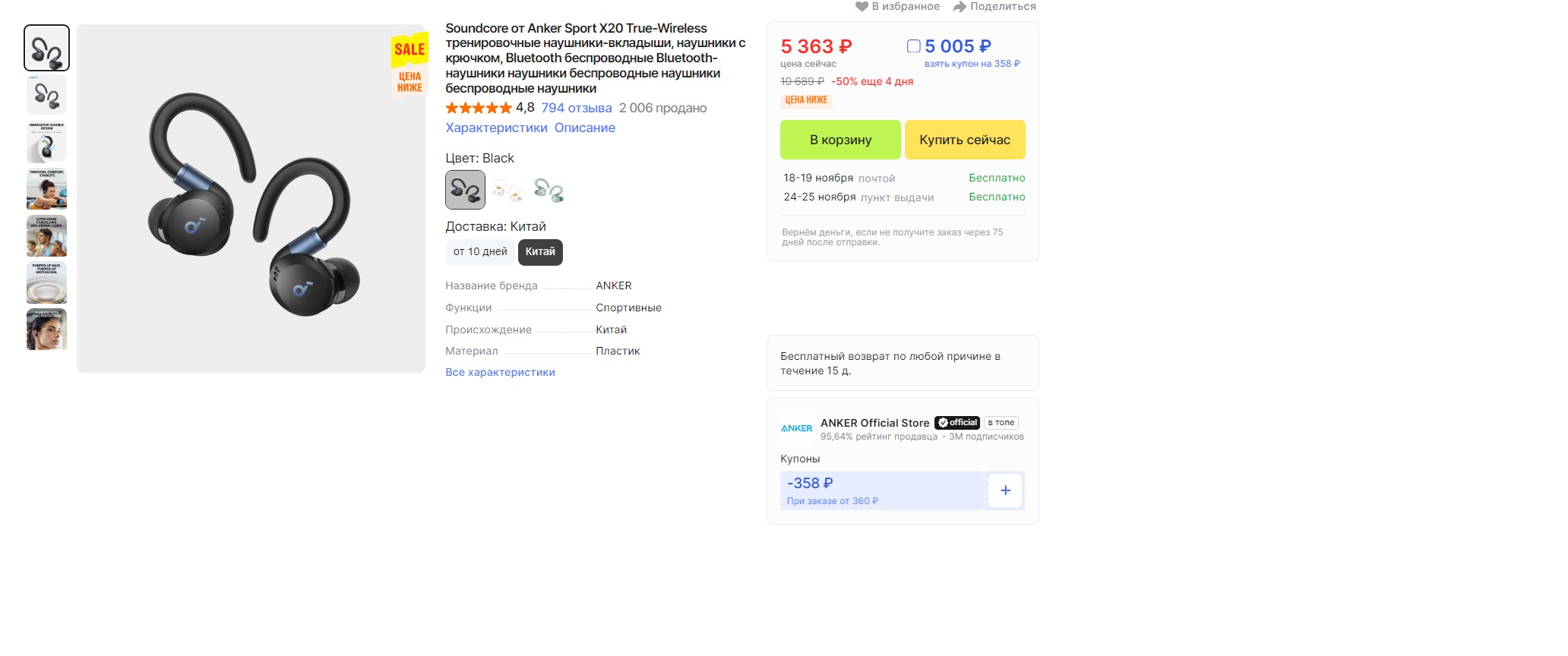 Цена 5005 руб. ещё 4 дня. Отзывы отличные, но это Anker 😉