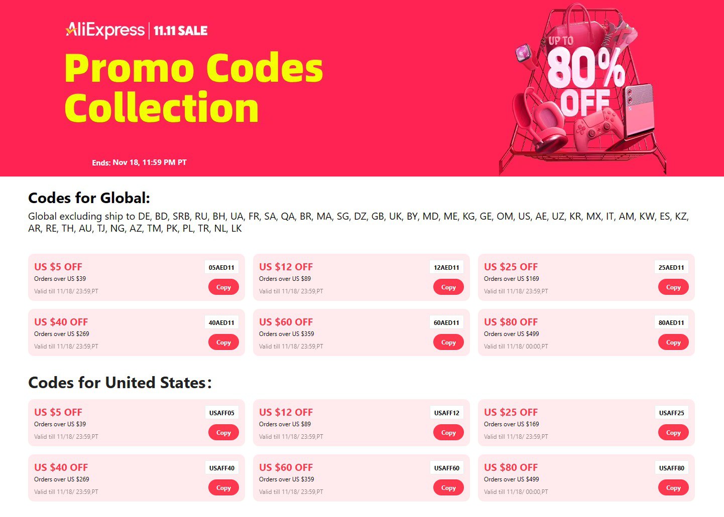 Глобальный AliExpress проводит распродажу 11.11 в те же даты, что и российский.
