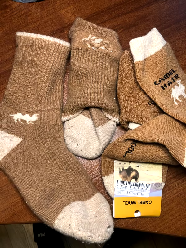 Нам завтра снег обещают, так что пора переходить на зимне-теплое. Например, вот такие носочки из верблюжьей шерсти. На самом деле я не проверяла из чьей они там шерсти - из верблюжьей, овечьей или вообще собачьей, мне как-то безразлично, главное, что свою функцию они выполняют на 100%. Я даже больше скажу. Я заказывала у другого продавца и довольно давно, и сразу упаковку. Так вот, сын, для которого они заказывались вырос и ноги его, соответственно , тоже, а носки теперь донашивает младшая дочь, и ещё пару пар лежит нераспакованых. Видимо у нас не настолько холодно, а носки настолько износостойкие. Так что очень советую брать, но в ограниченных количествах.
