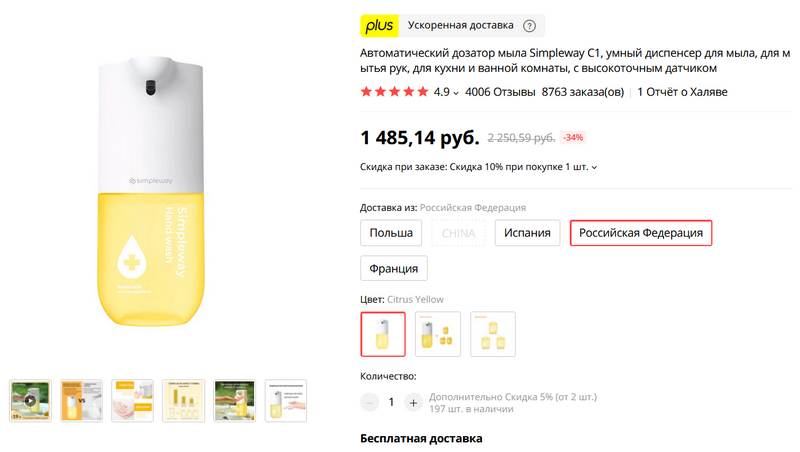Очередной диспенсер для мыла. Пену взбивает (они не все ее взбивают), есть доставка с российского склада, а самое главное - тут правильная конструкция головки емкости для мыла: она просто вкручивается в корпус дозатора по резьбе. А то бывает, что такого намудрят... Также можно заказать вместе с дополнительными емкостями, в которых налиты натуральные растительные эссенции (как там утверждается). Заказал для коллекции, тем более что из Испании доставка тоже есть.