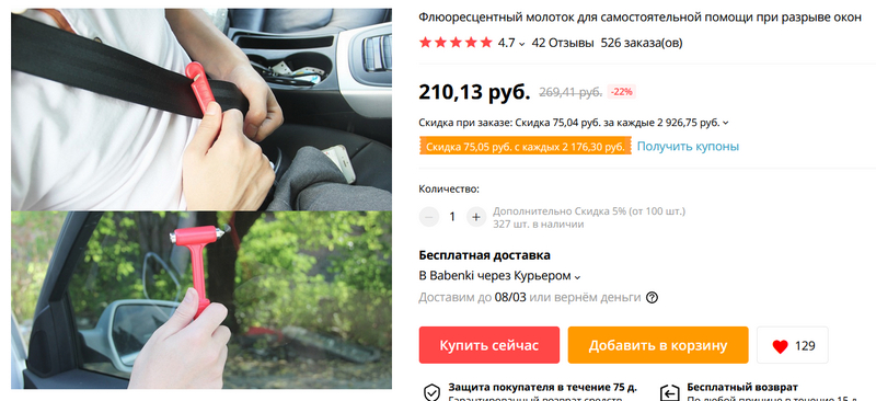 А вот такие устройства имеет смысл положить в дверь рядом с водительским и пассажирскими сиденьями. Будем надеяться, что никогда не понадобится, но если вдруг что - с его помощью можно перерезать заклинивший ремень и разбить боковое стекло.