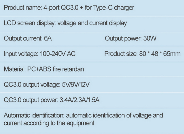 USB-C поддерживает Qualcomm QC4, QC4.0/QC3.0/QC2.0, Samsung AFC, Huawei FCP, SCP, PE2.0, PE1.1, SFCP, PPS, PD3.0,PD2.0.