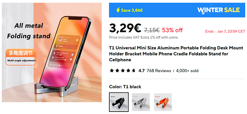 У меня есть пара подставок для смартфона (периодических их использую для видеоконференций на смартфоне или для просмотра чего-либо со смартфона), но они немаленькие и занимают место. Искал надежную, но компактную и складную подставку - нашел вот такой алюминиевый вариант (ссылка для РФ). То что нужно, заказал.
