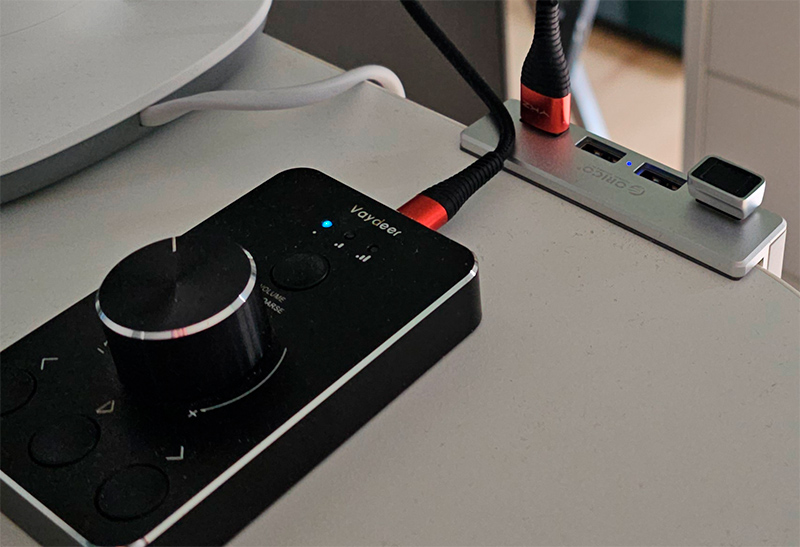 На фото в него воткнута устройство для регулировки звука на ПК (ссылка для РФ) - очень удобная штука, пользуюсь такими много лет (раньше была простейшая, эта - более продвинутая).