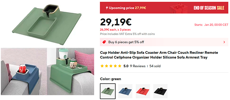 Для любителей сидя на диване перед телевизором что-нибудь погрызть и выпить - силиконовая накладка (ссылка для РФ) с отделениями для еды и напитка. Четыре варианта цветов. Я как-то покупал такую тканевую - она была не слишком удачная, потому что постепенно сползала. Силиконовая должна сидеть как влитая - проверю.