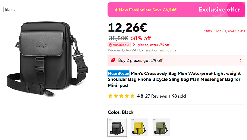 Мужская наплечная сумка HcanKcan (ссылка для РФ) - мой любимый формат наплечной сумки. Очень важно - большое наружное отделение, куда можно положить здоровый смартфон, и чтобы это надежно закрывалось (замок, как в данном случае - предпочтительнее молнии, которую легче раскрыть ворью). Также тут большое основное отделение с двумя секциями, еще и заднее отделение на молнии. Влагоотталкивающая износостойкая ткани Оксфорд, три варианта расцветки.