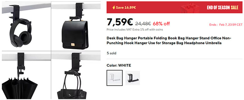 Удобный держатель (ссылка для РФ) для самых разных вещей - от наушника до сумки, - который может прикручиваться к столу и ножкам стола