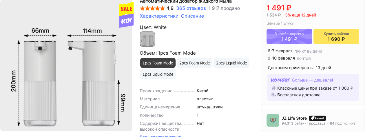 Про "новые комбо" - ну прочитайте разок описание, там не бином Ньютона. В трех словах - заказ д.б. дороже 1000р, применительно к этому дозатору можно игнорить.