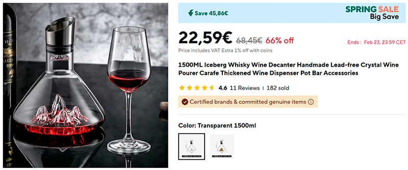 Очень эффектно выглядящий декантер для вина на 1,5 л (ссылка для РФ) со встроенным аэратором.